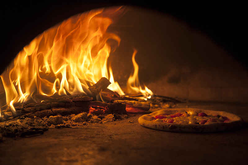 窯はイタリア製石窯を使用、炎の流れが違います。約400度の高温で素早く焼き上げます。 薪で焼いたピッツァは香ばしく表面はサクッと中はモッチリ!エッジも美味しくいただけます。 生地は自家製オリジナルブレンド粉。 福岡県産小麦「チクゴイズミ」の石臼粉を使っています。