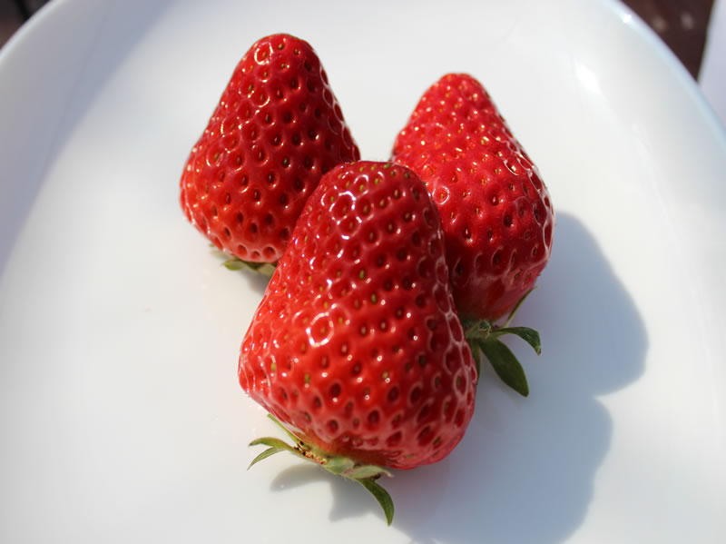 ビタミンCも他のいちご品種に比べ多く、果皮の色は濃い鮮赤で、光沢があるのが特徴。